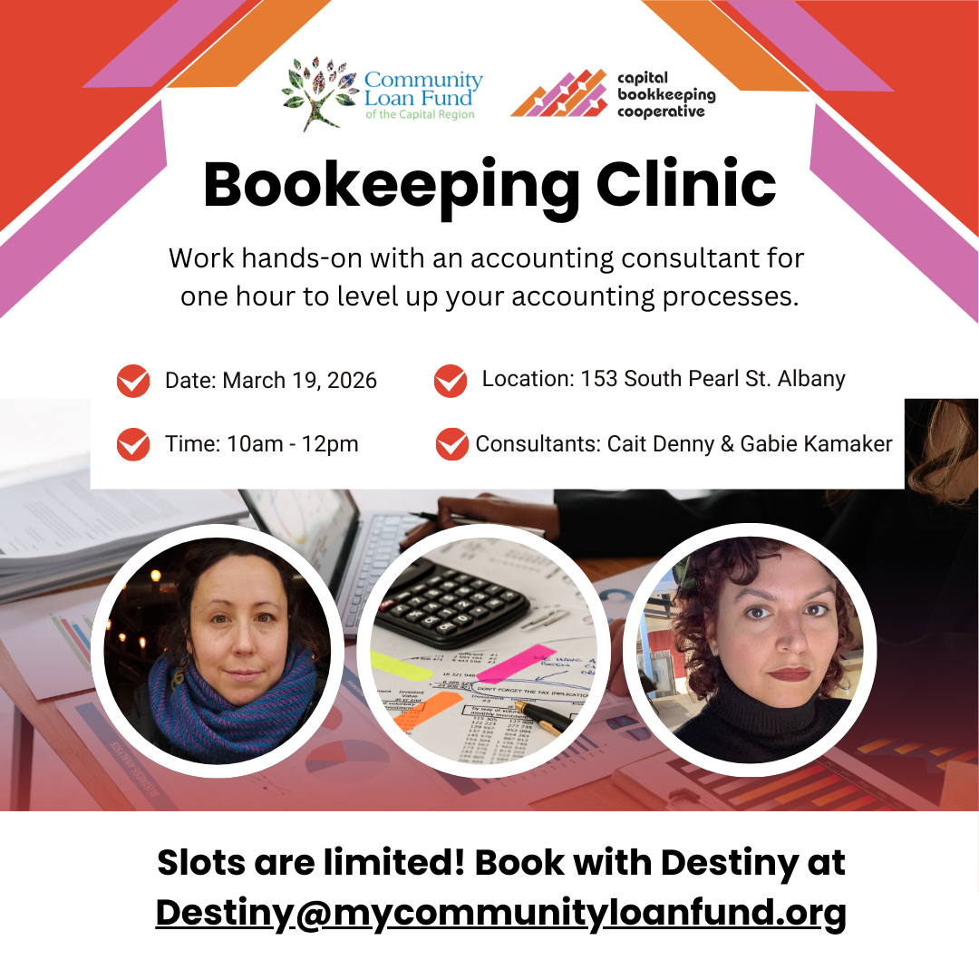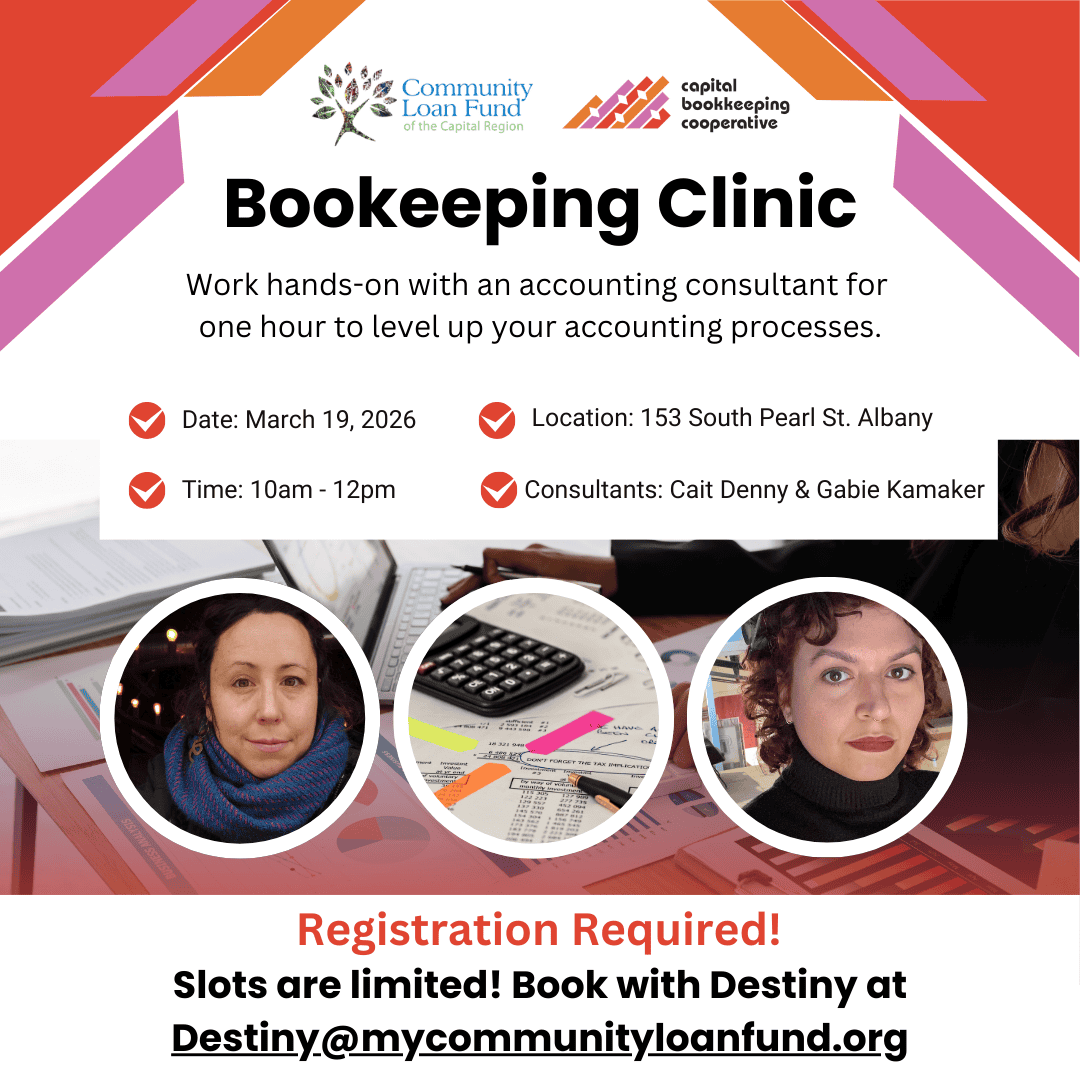 Spots are limited to ensure personalized attention. Book with Destiny at Destiny@mycommunityloanfund.org or call 518-436-8586 ext. 805